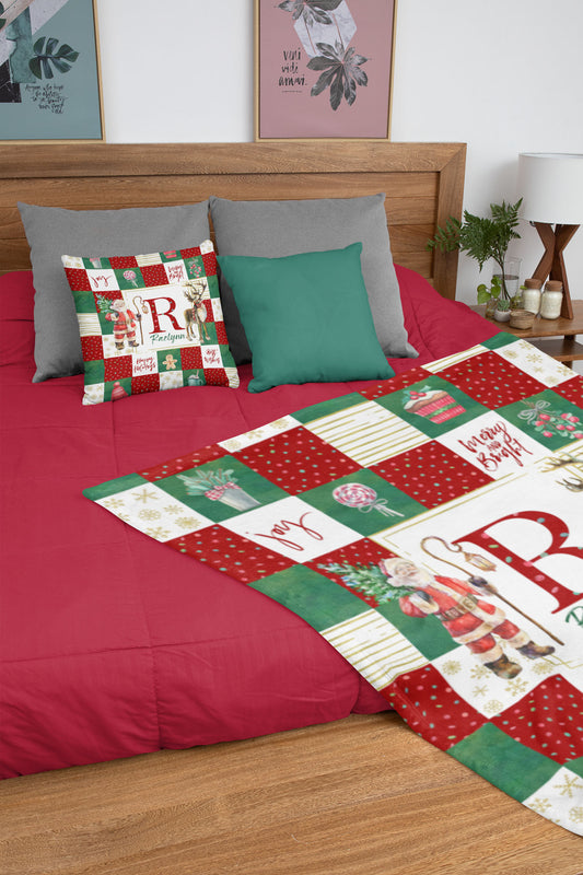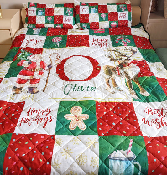 Christmas Patchwork Personalized Quilted Bedspread Set