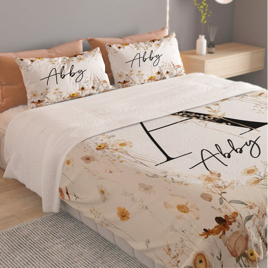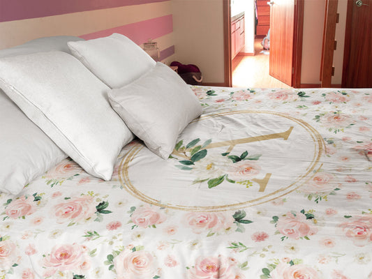 Blush Florals with Letter Personalized Duvet Cover Set for Girl