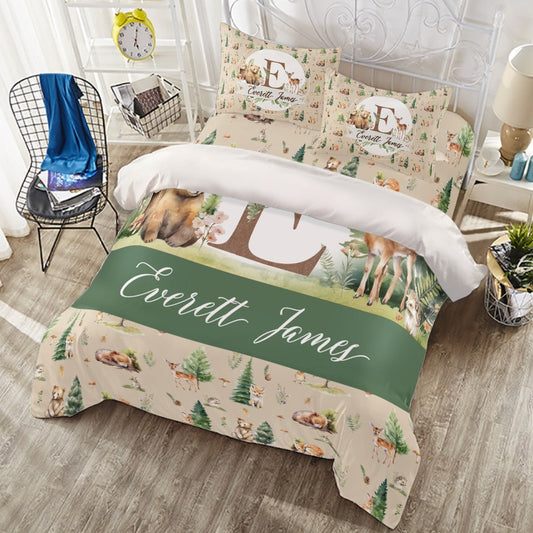 Beige Woodland Personalized Duvet Cover Set for Boy