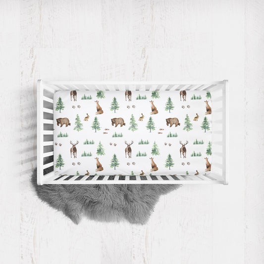 Forest Animals Woodland Patterned Crib Sheet for Boy