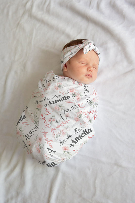 Gentle Pink Repeated Name Personalized Blanket for Girl