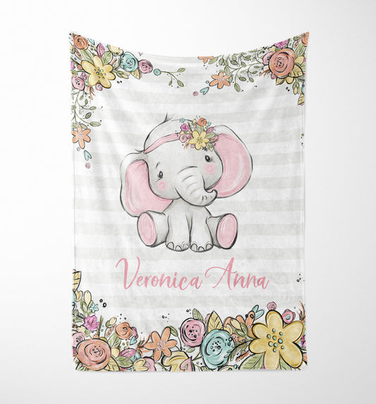 Happy Elephants Personalized Blanket for Girl