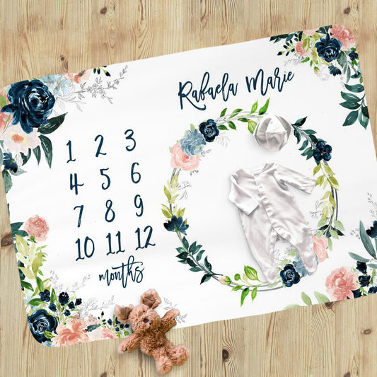 Moonlight Lullabies Blush and Navy Milestone Blanket for Girl