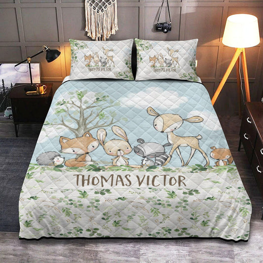 Greenery with Deer and Friends Personalized Quilted Bedspread Set
