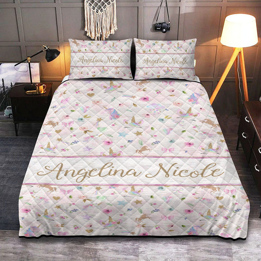 Blush Florals Royal Patchwork Personalized Quilted Bedspread Set