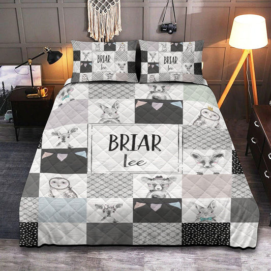Forest Animals Patchwork Personalized Quilted Bedspread Set