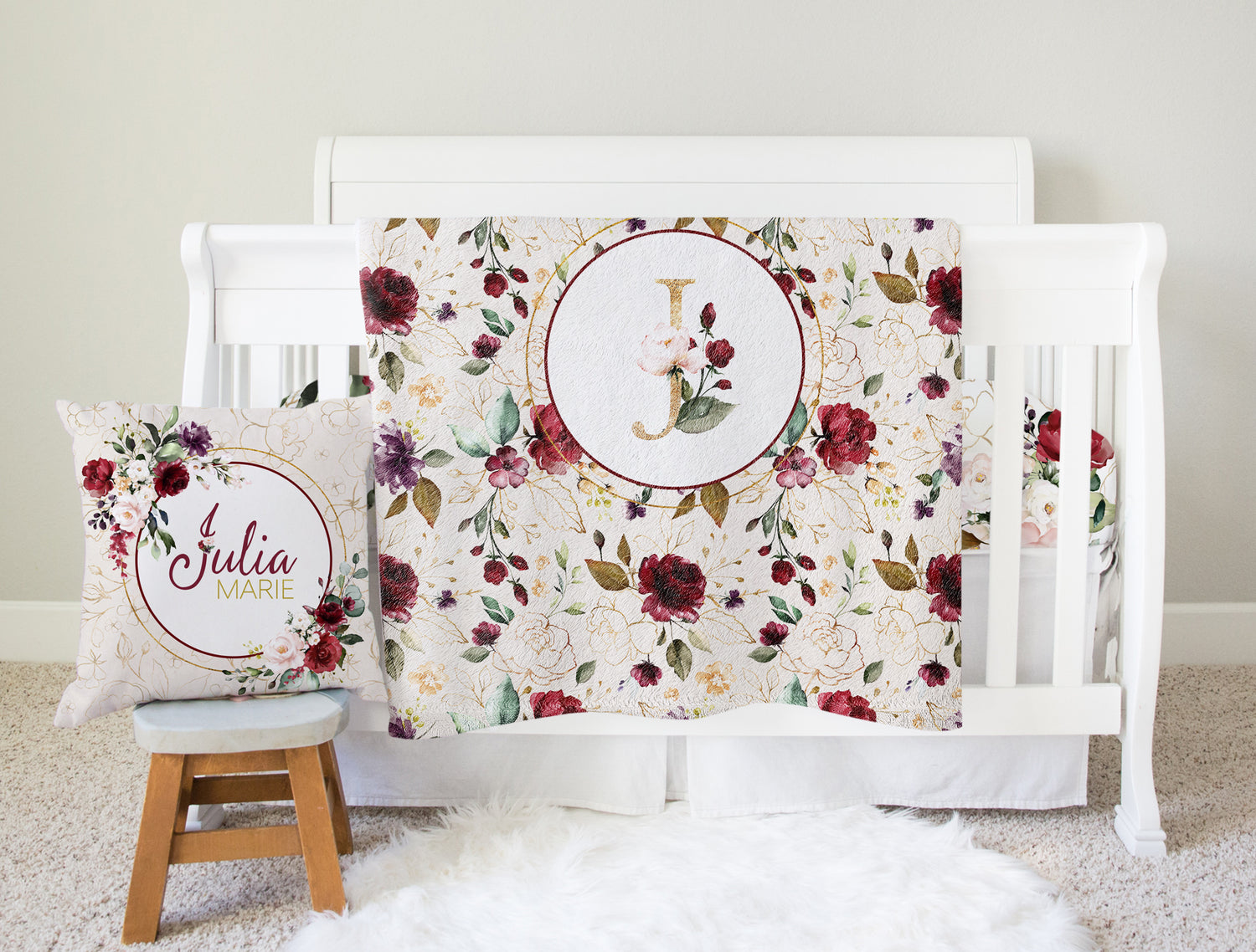 Beautifully printed with bold roses, this baby bedding set will give your...