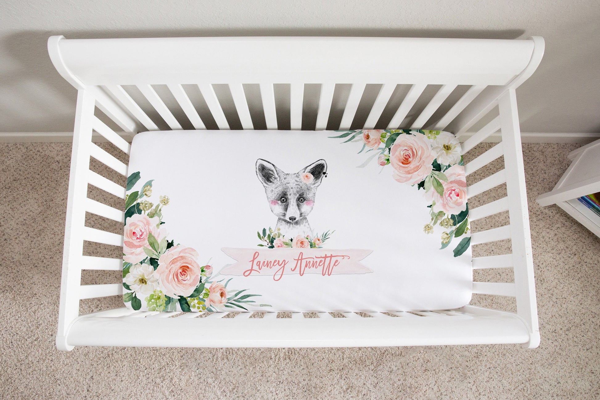 Blush Florals with Black and White Animals Personalized Crib Sheet for Girl