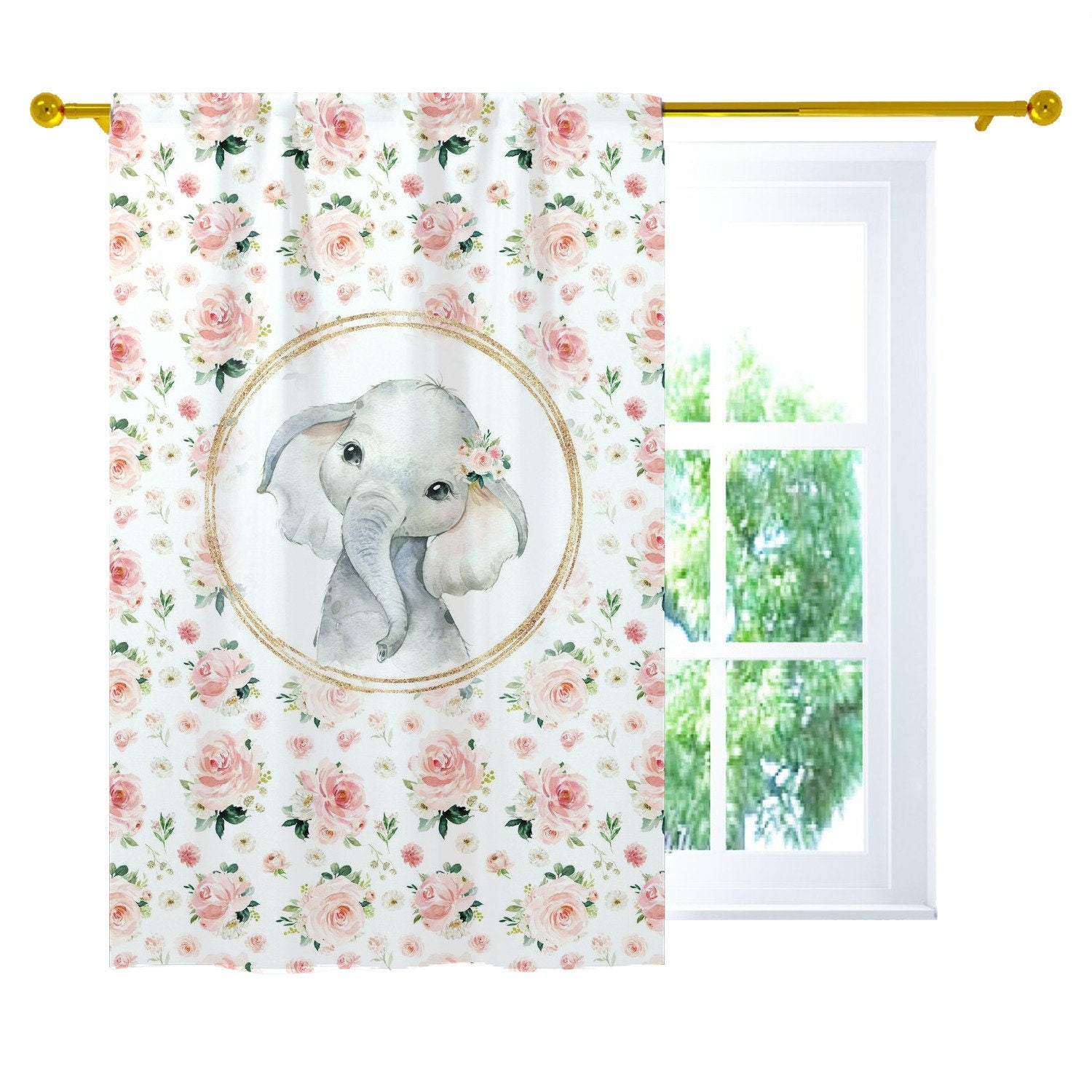 Blush Florals with Elephants Blackout Curtains