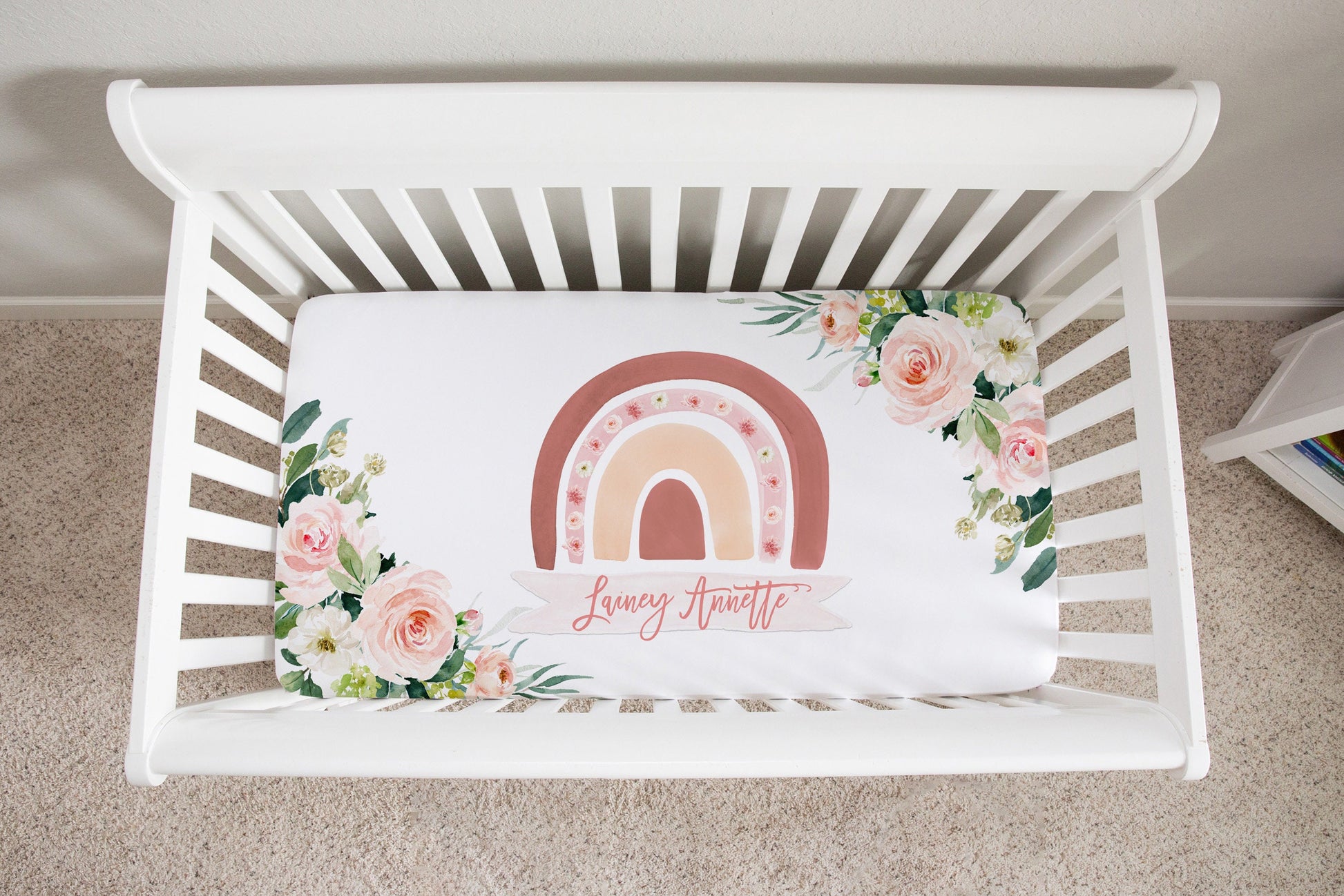 Blush Florals with Rainbow Personalized Crib Sheet for Girl