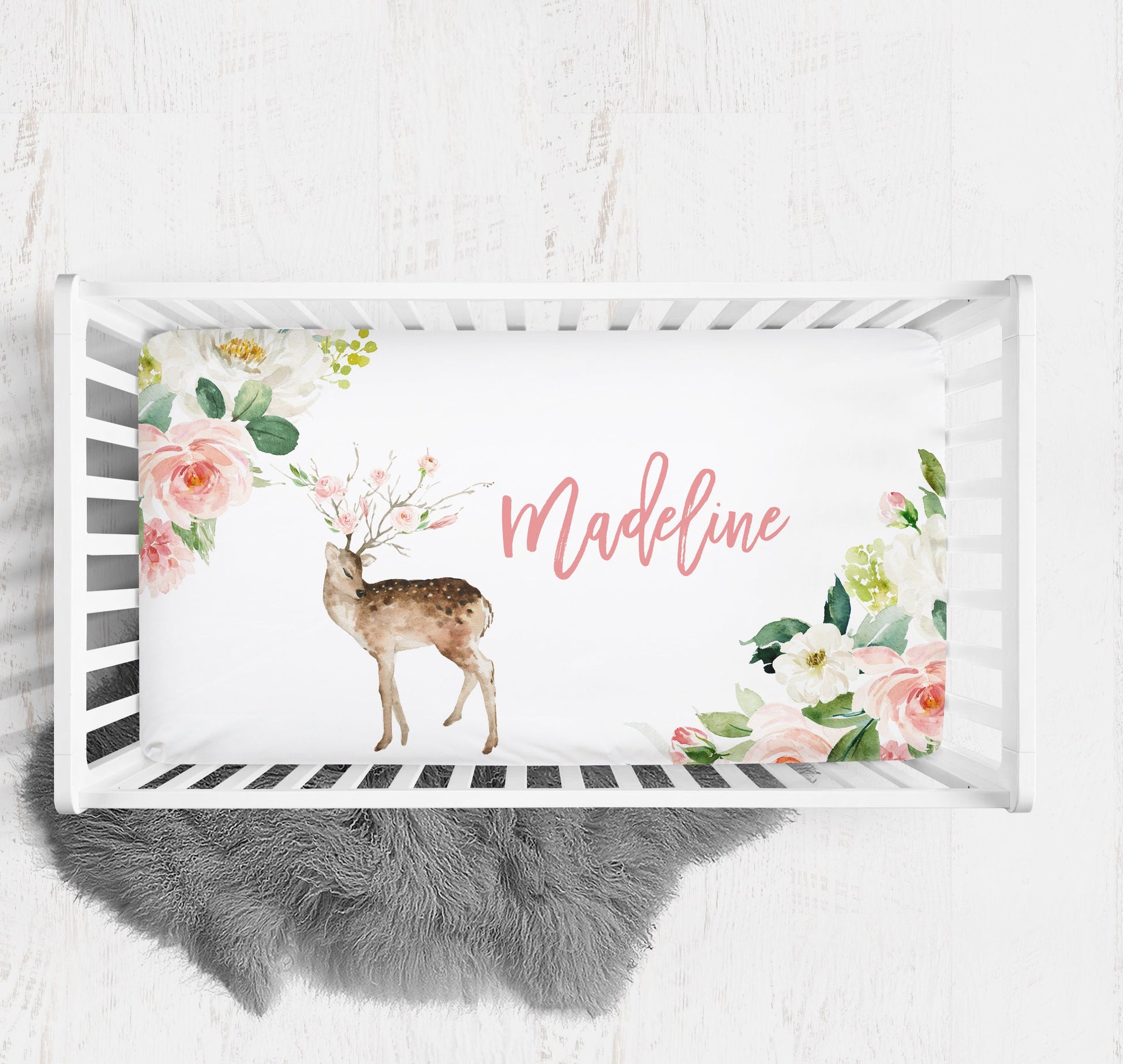 Blush Florals with Teepee Personalized Crib Sheet for Girl