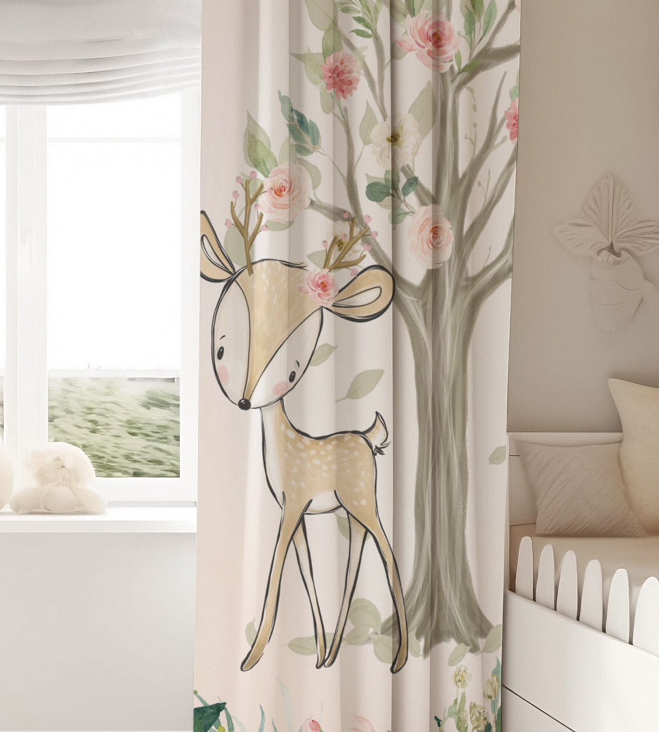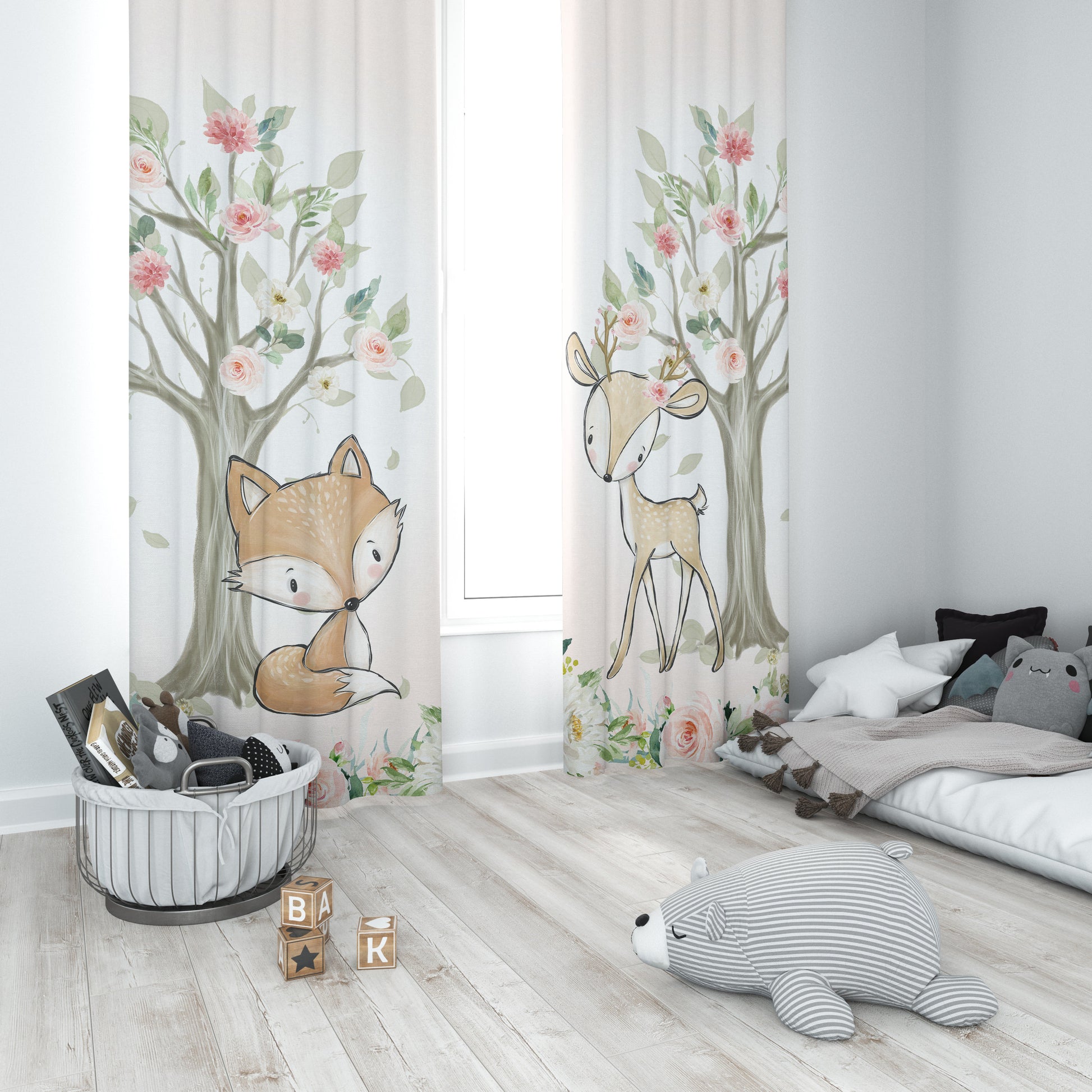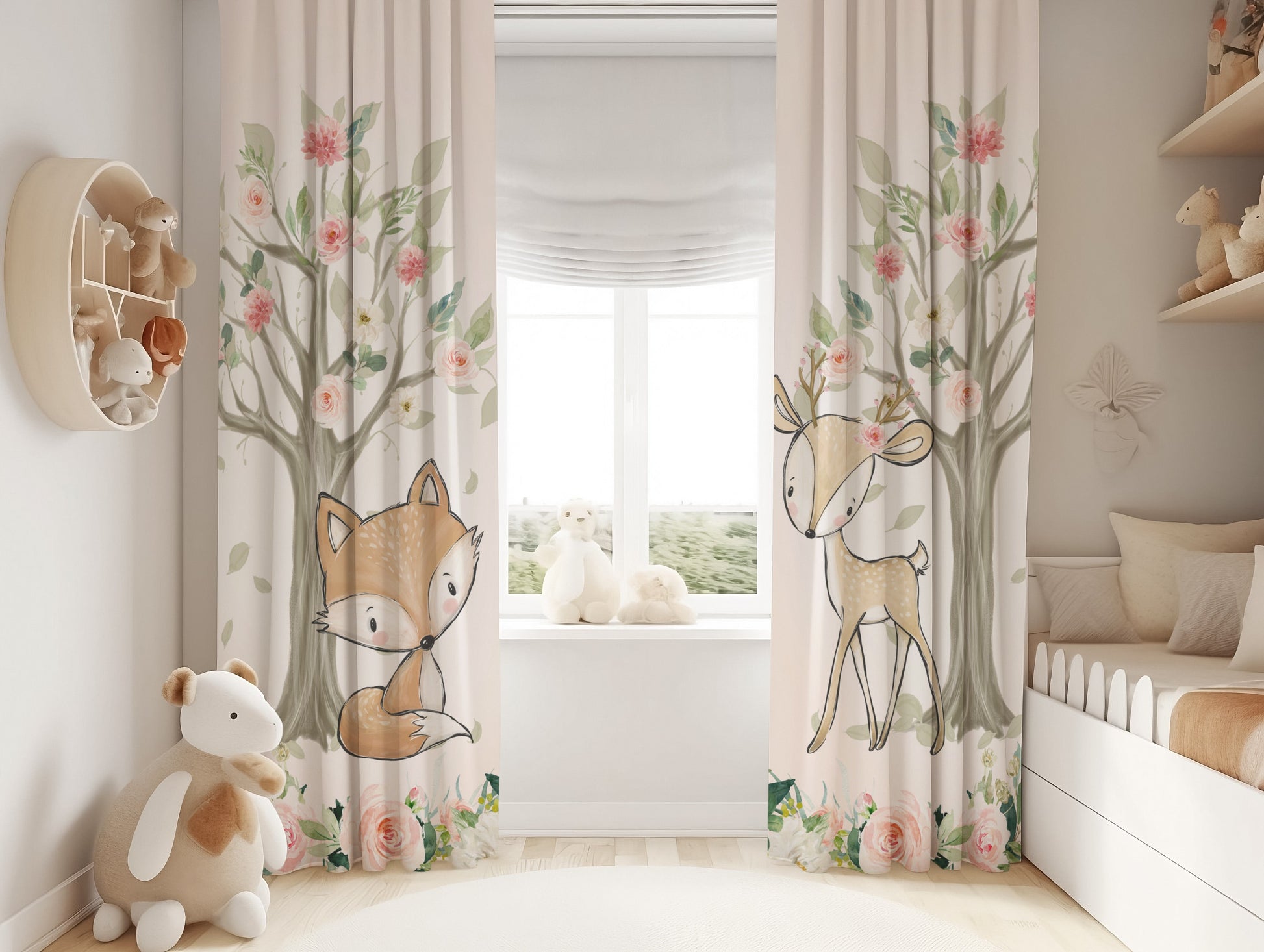 Blush Florals with Woodland Animals Blackout Curtains