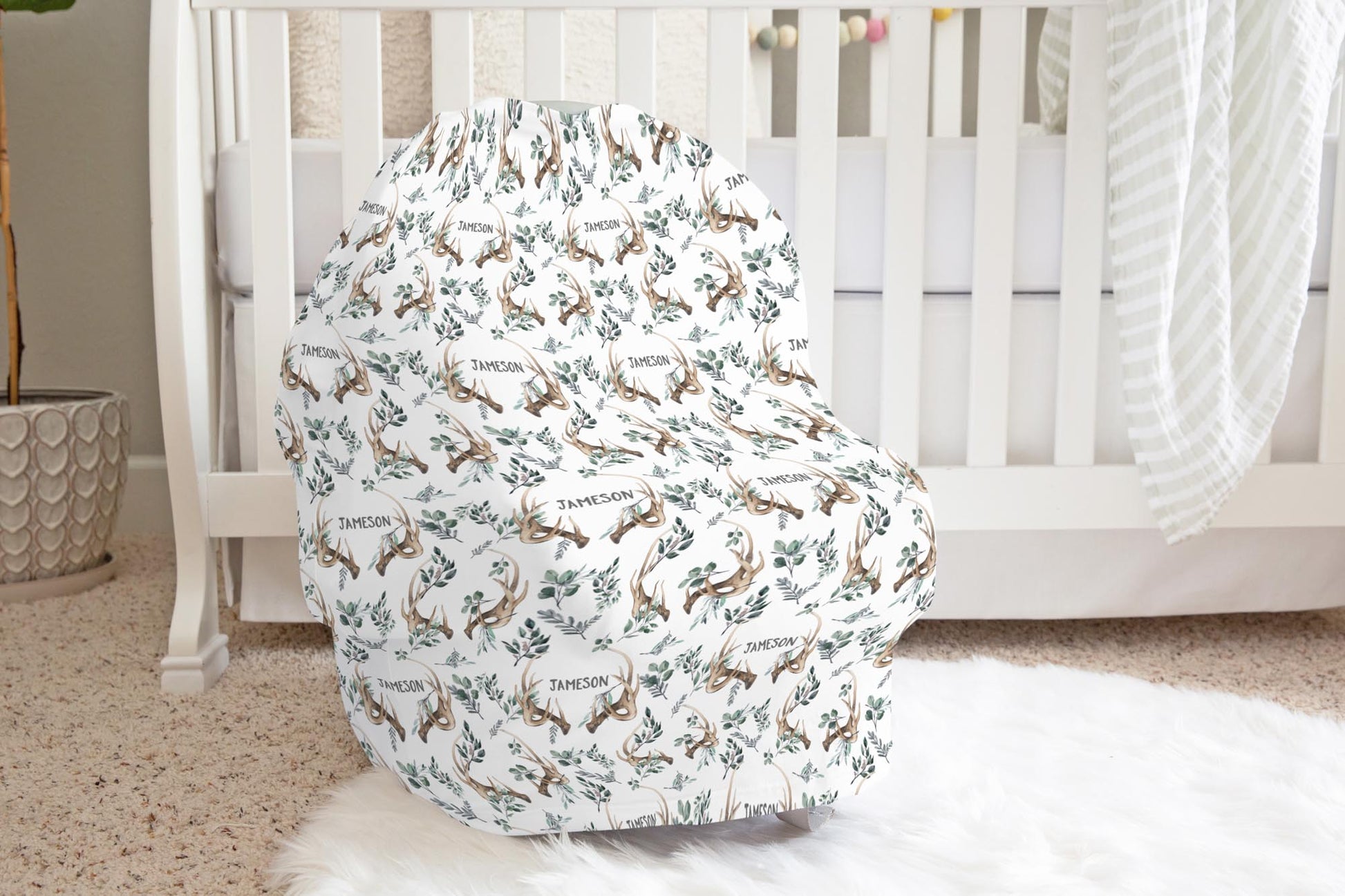 You'll love this car seat with boho antlers. With stretchy jersey fabric and a boho woodland pattern, this cover is perfect for keeping your child safe from the sun in a stylish fashionable way! The personalization makes it the perfect choice for a unique baby shower gift.