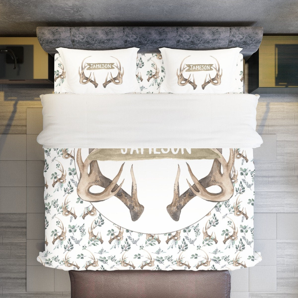 Boho Antlers Personalized Duvet Cover Set for Boy