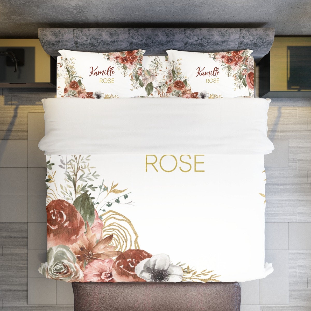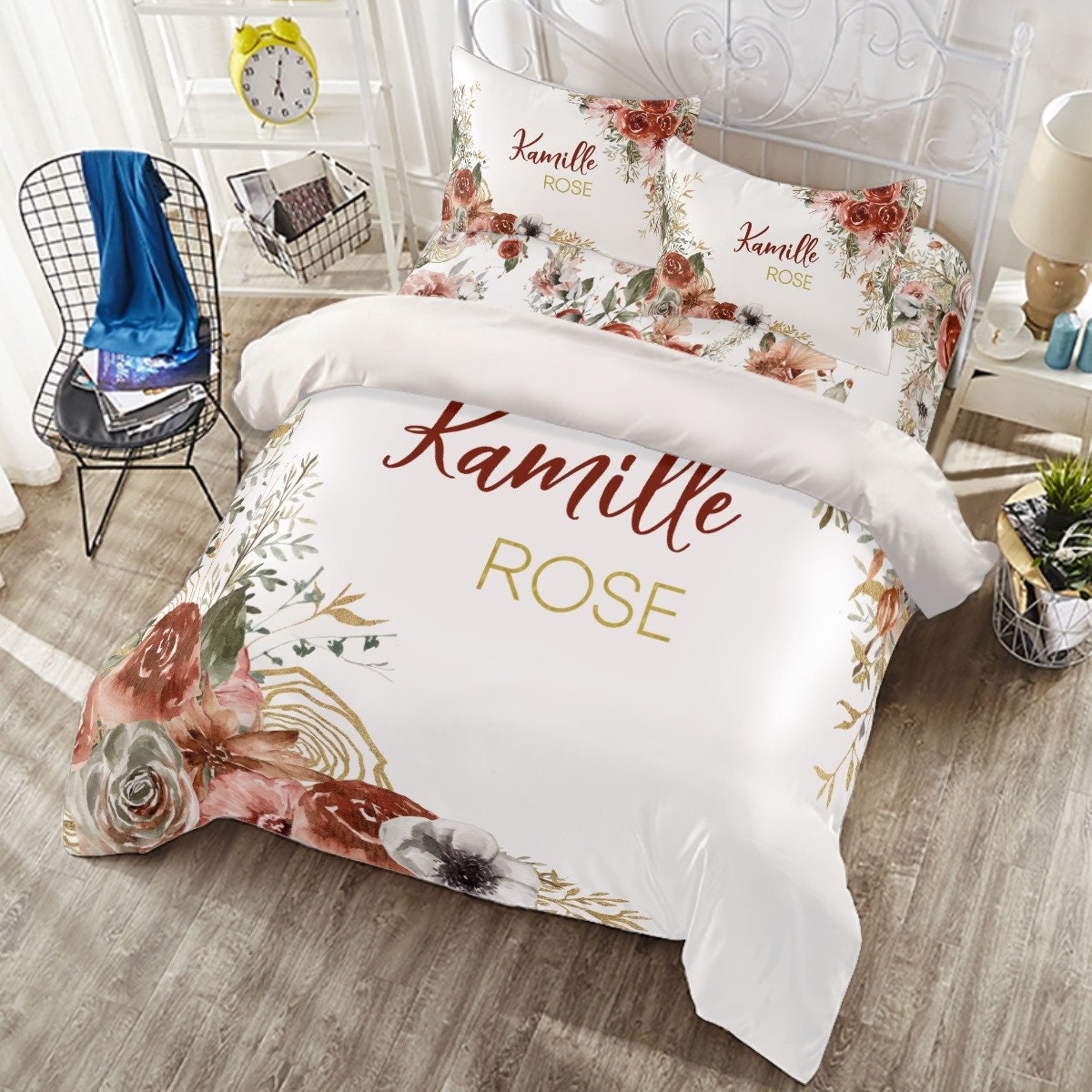 Brown Flowers Personalized Duvet Cover Set for Girl
