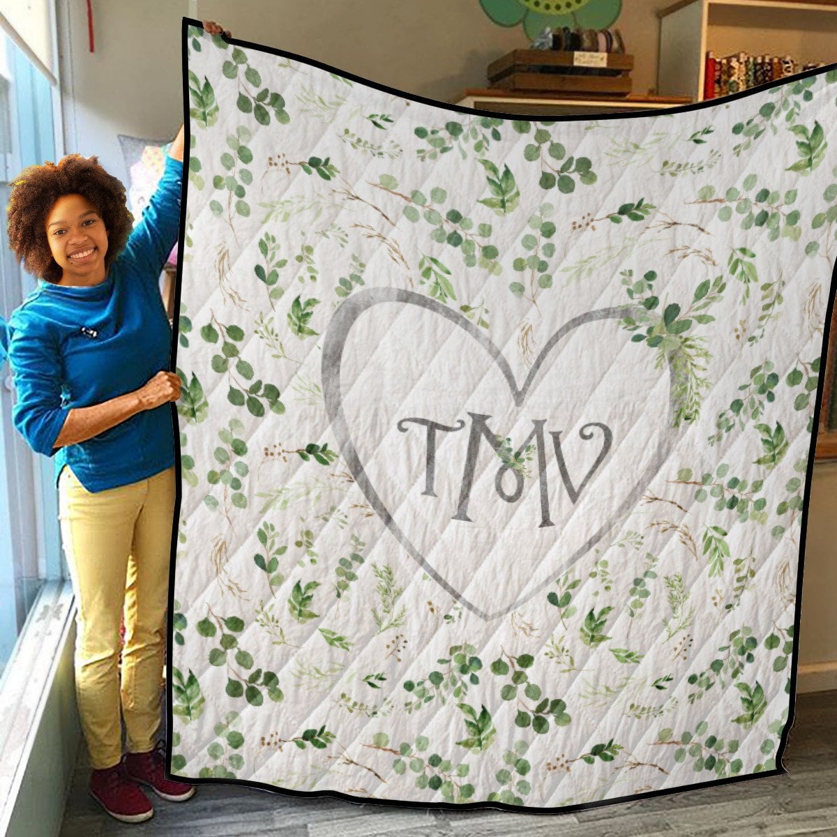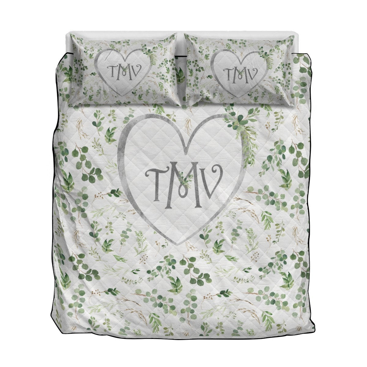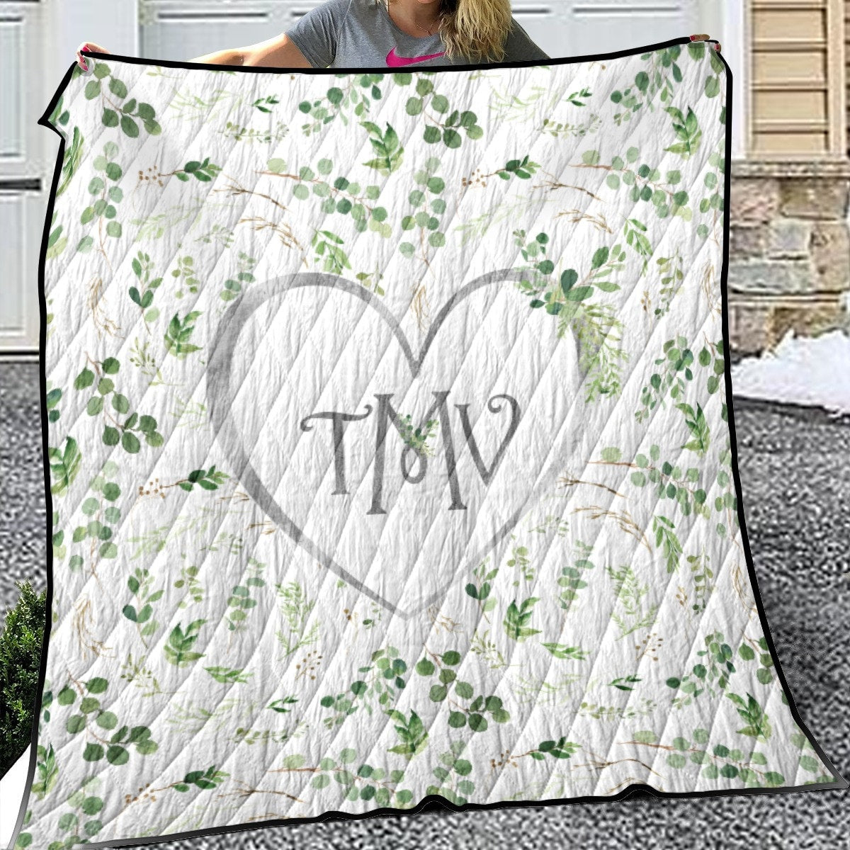Wrap yourself or your loved ones in warmth and comfort with our Greenery Personalized Quilt. This beautifully crafted bedspread set with leaves and silver heart is not only soft and durable but also customizable with a name of your choice, making it a perfect gift for both kids and adults alike.