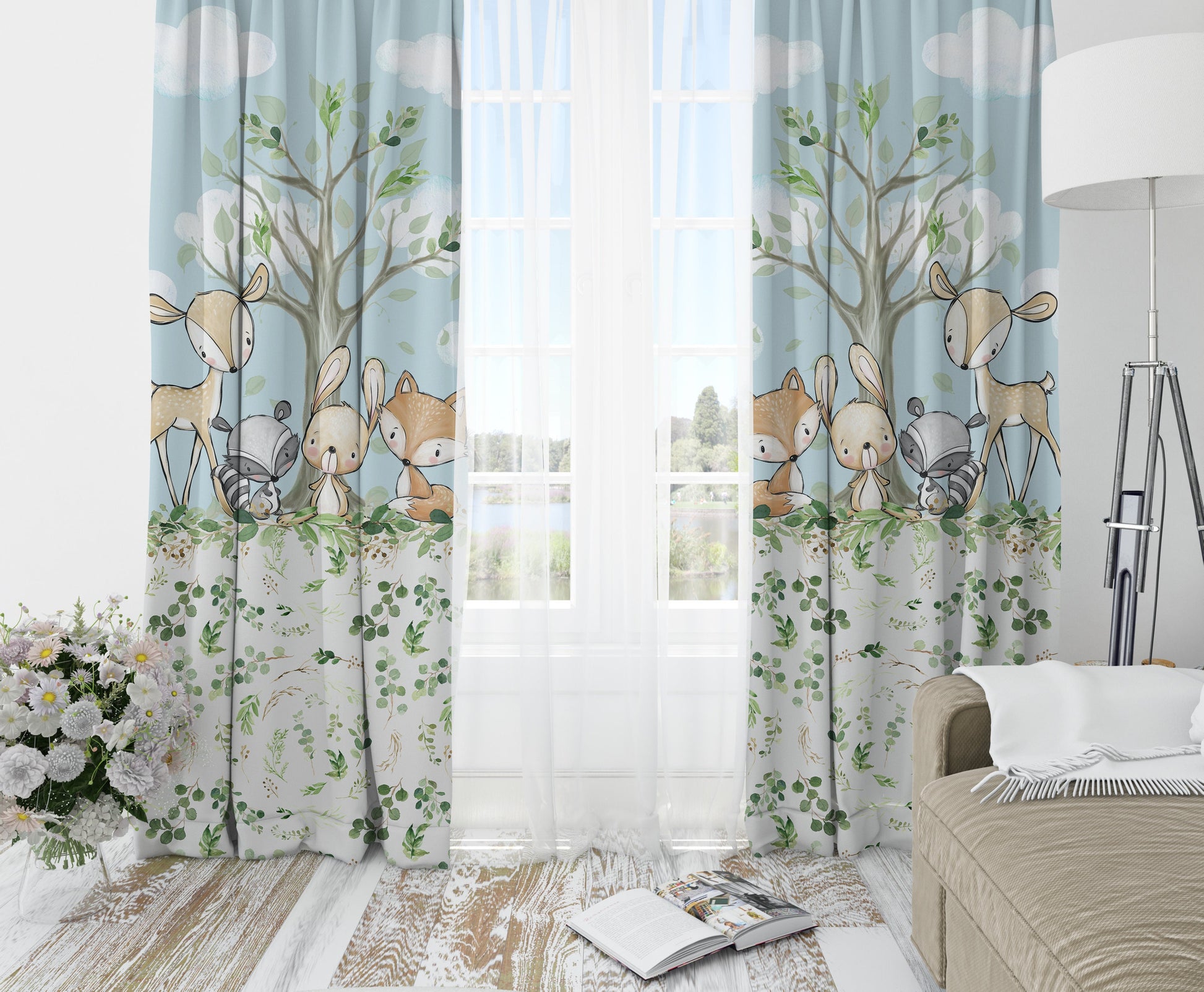 Greenery with Deer and Friends Blackout Curtains