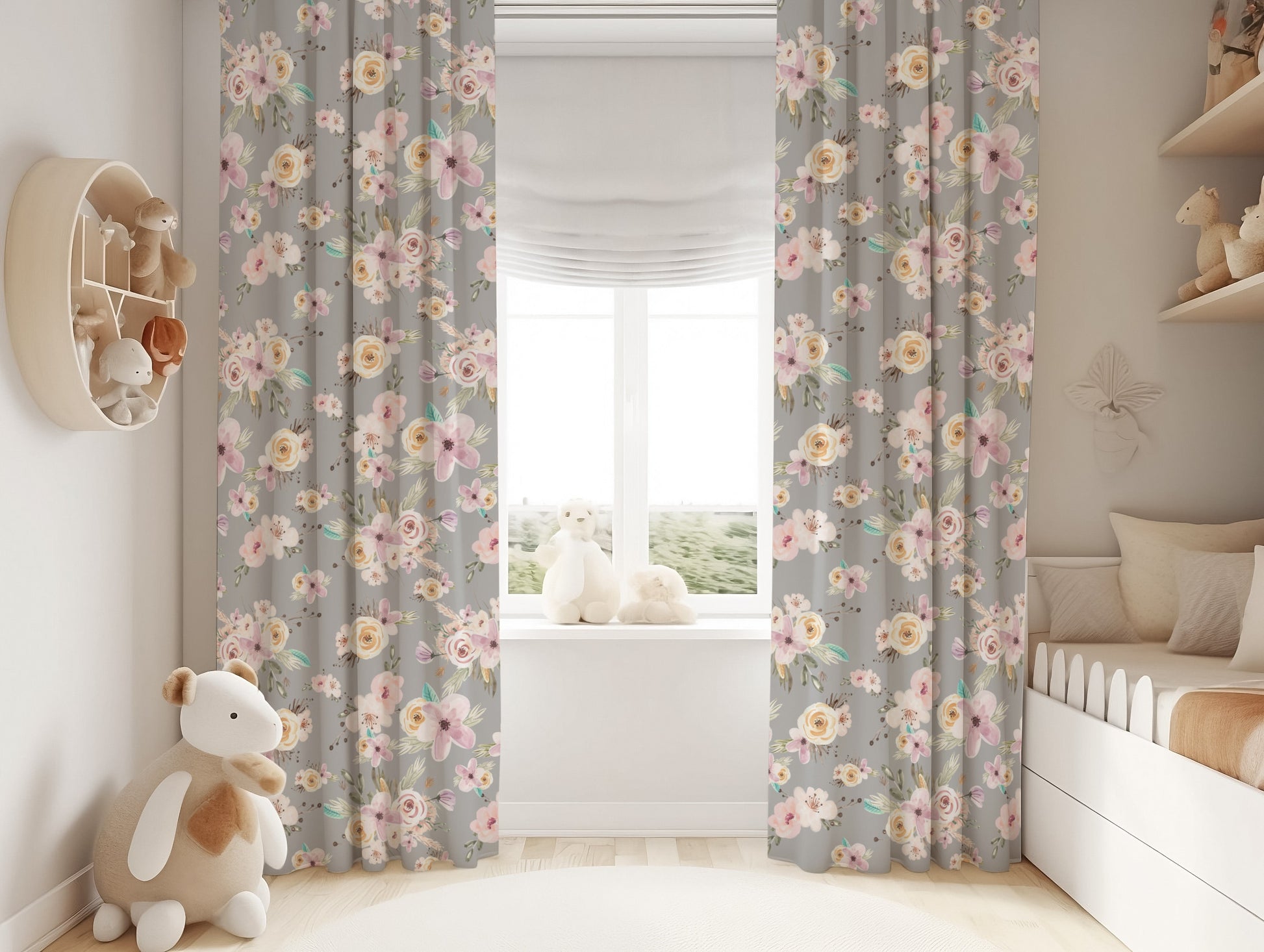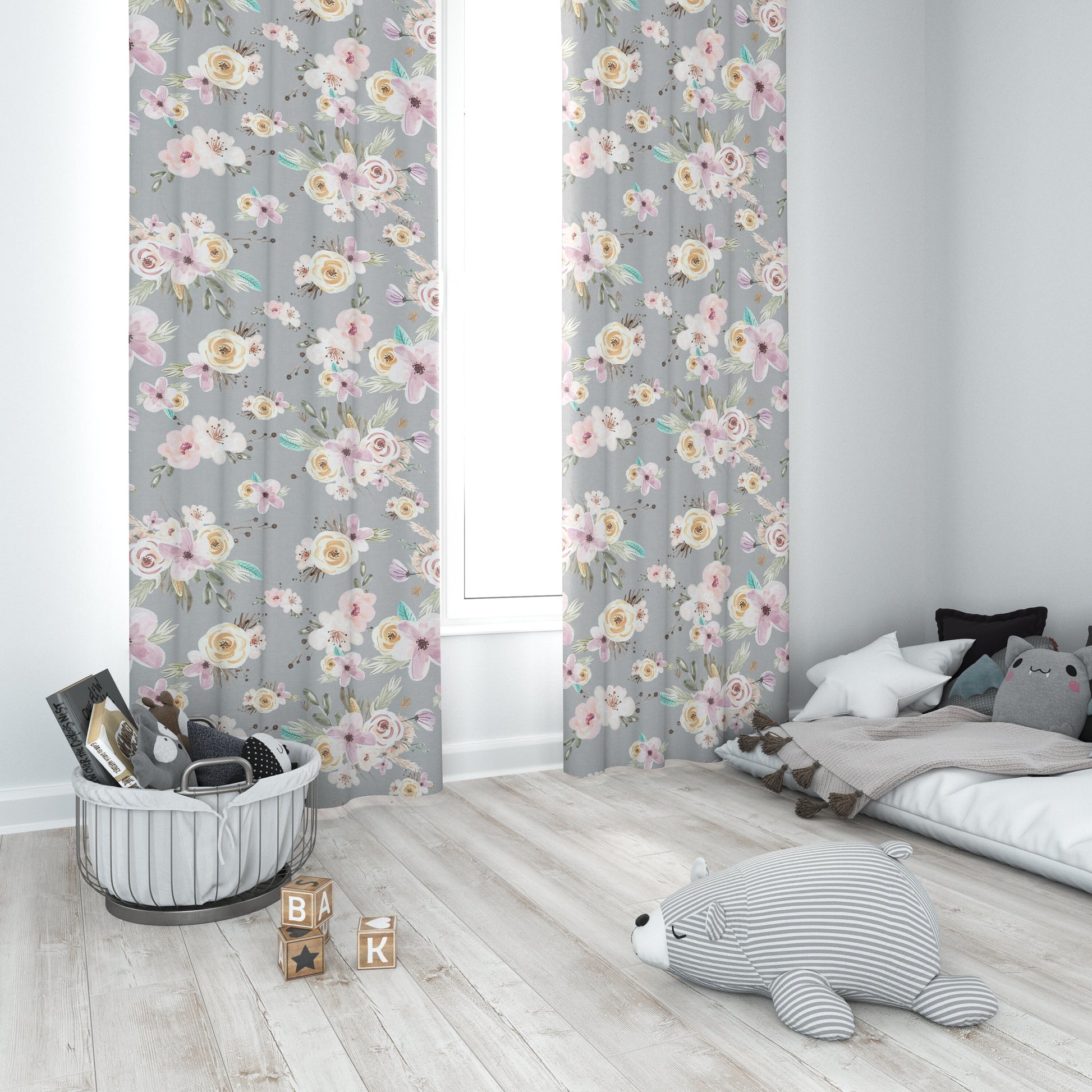Grey Flowers Blackout Curtains