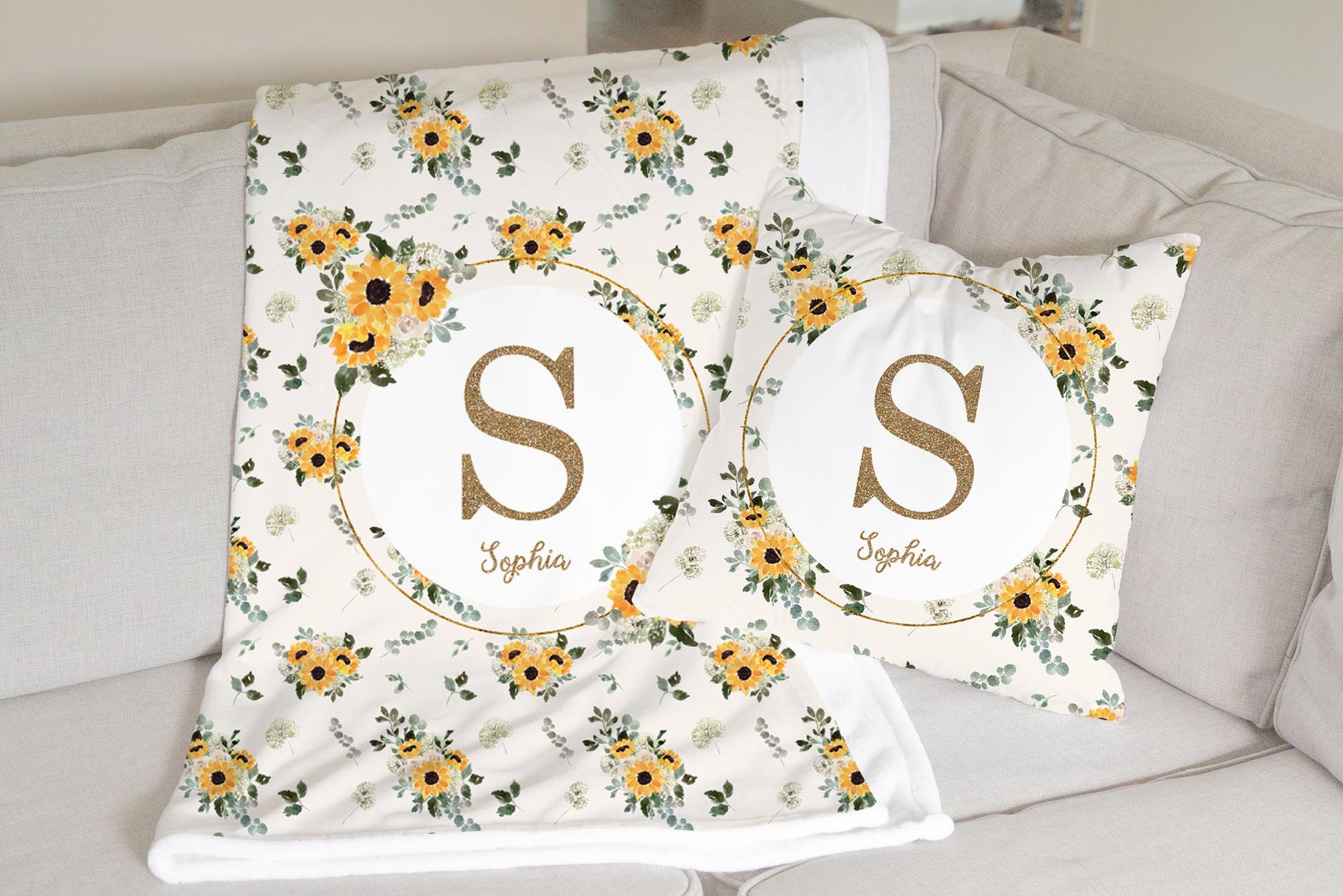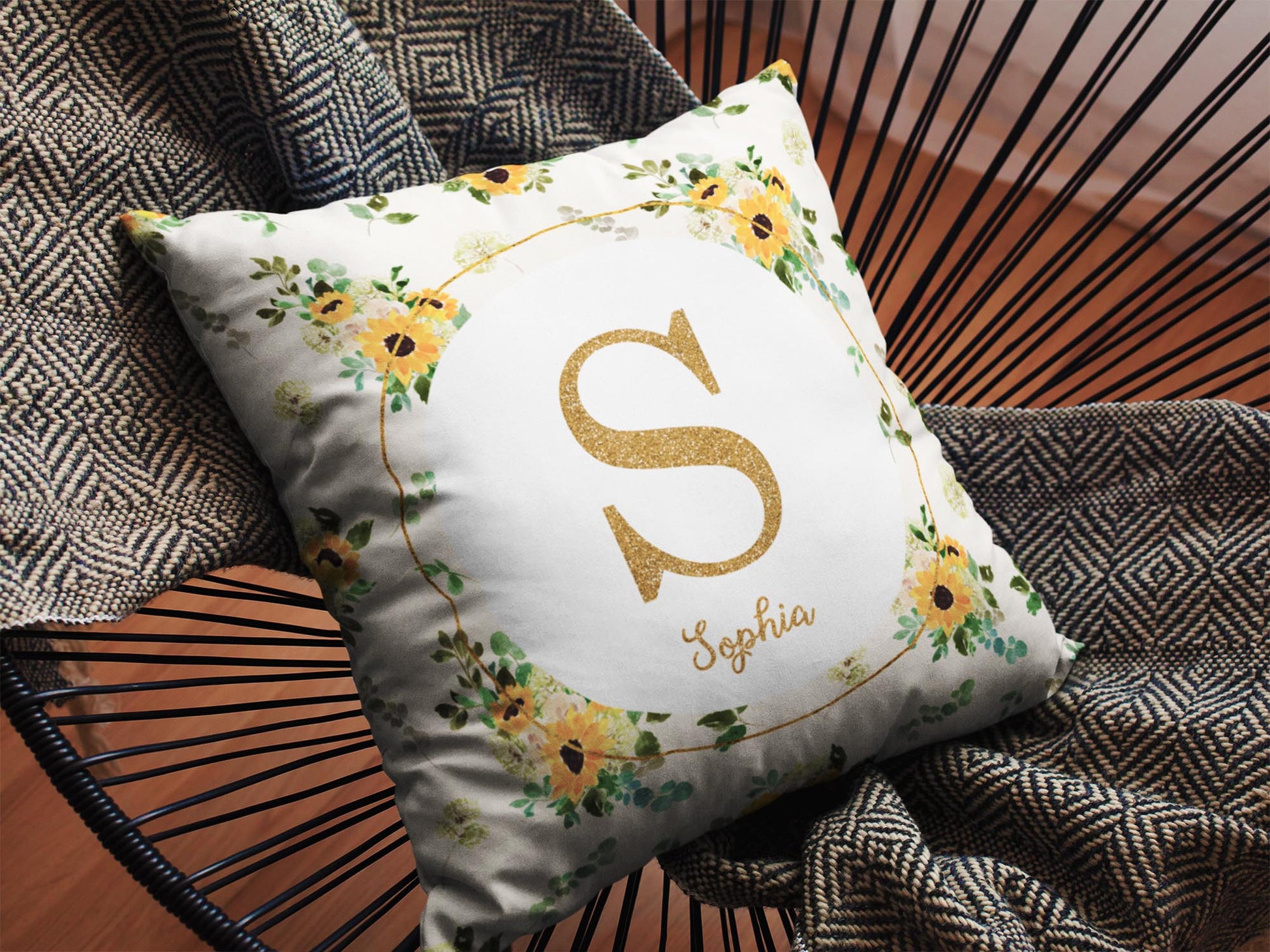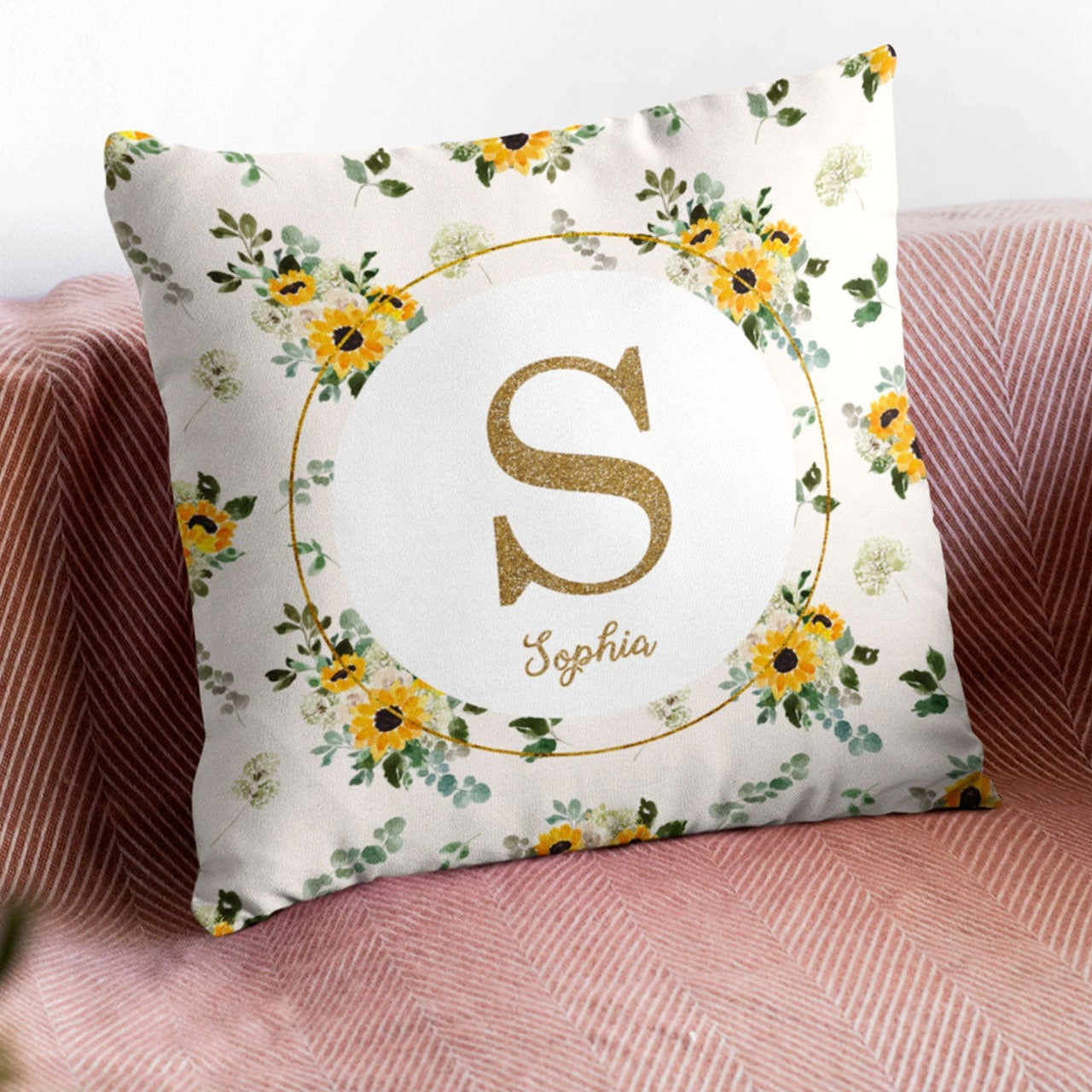 Hello Sunshine Sunflower Monogrammed Pillow for Girl