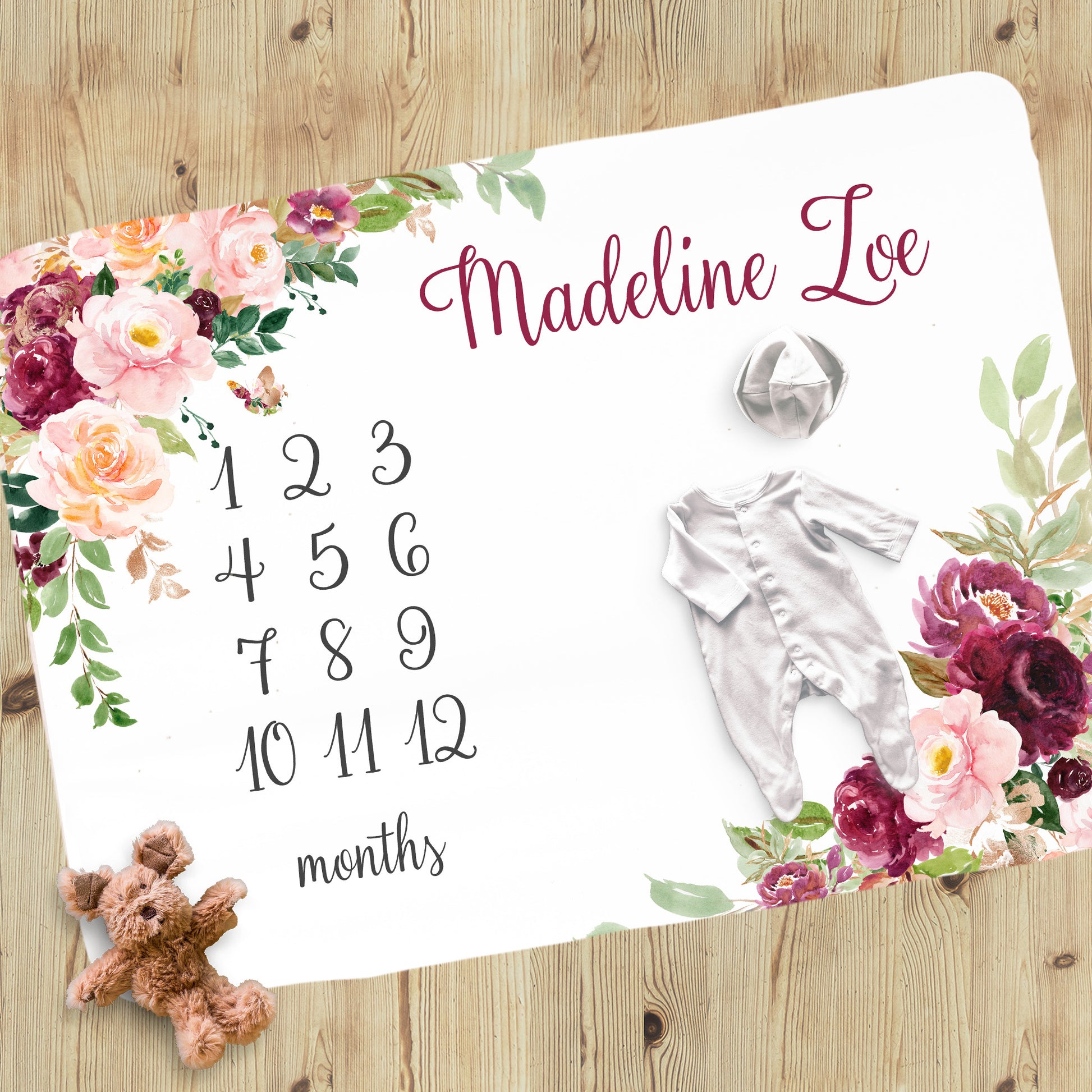 These milestone fleece, minky, or sherpa blankets are the perfect keepsakes and baby shower gift for a mom-to-be.