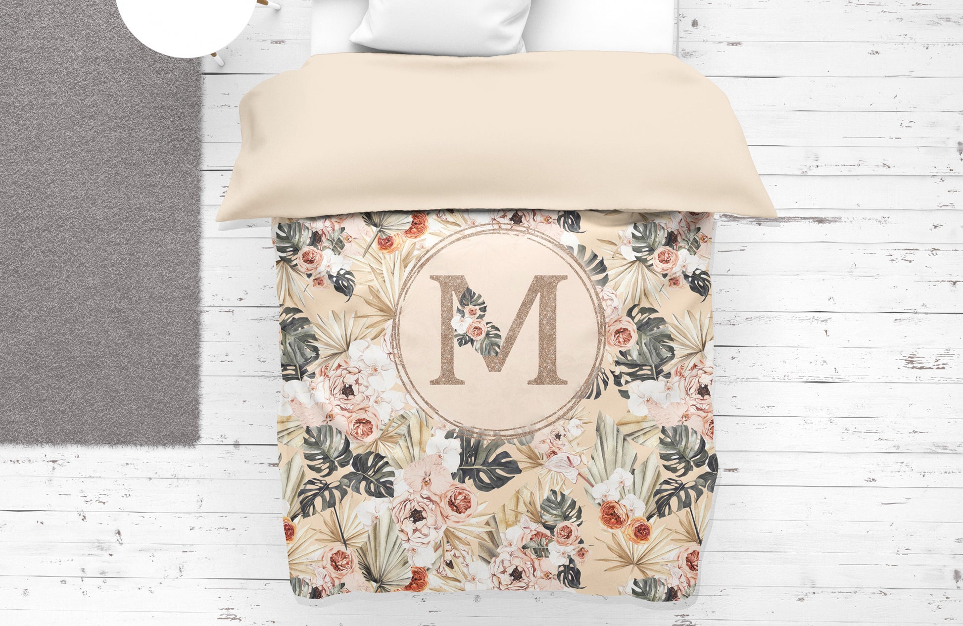 Our Modern Tropics monogrammed duvet covers are a perfect choice for girls who love bright colors. This pattern features tropical flowers and palm leaves that certainly make a fashionable bedroom update.