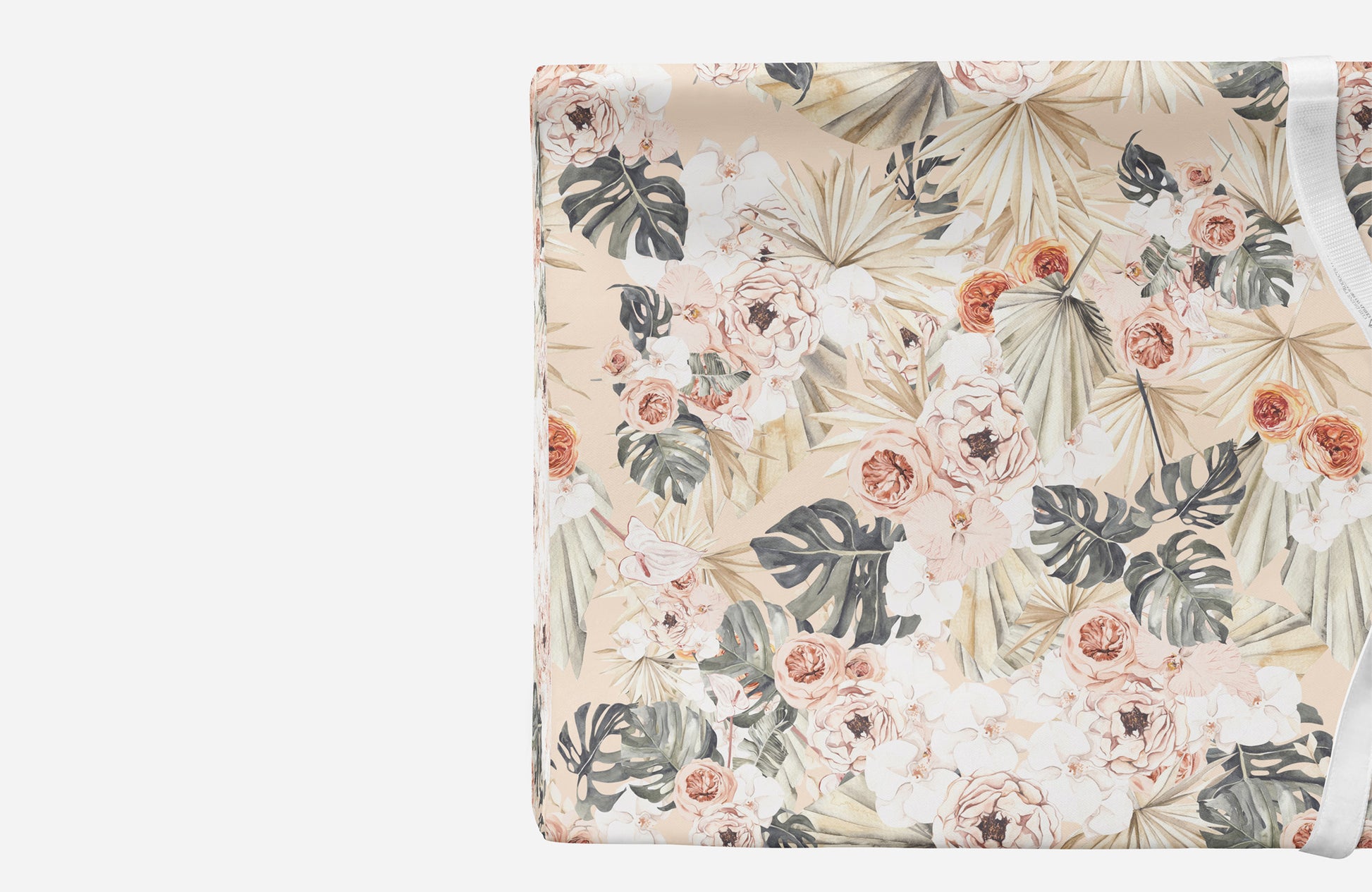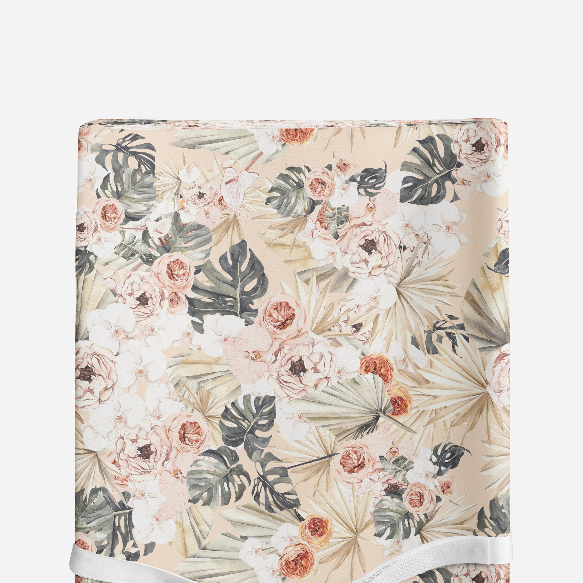 Our changing pad covers are designed to match your little one's Modern Tropics themed nursery. With the vibrant colors and tropical flowers you will dress up your nursery in style!