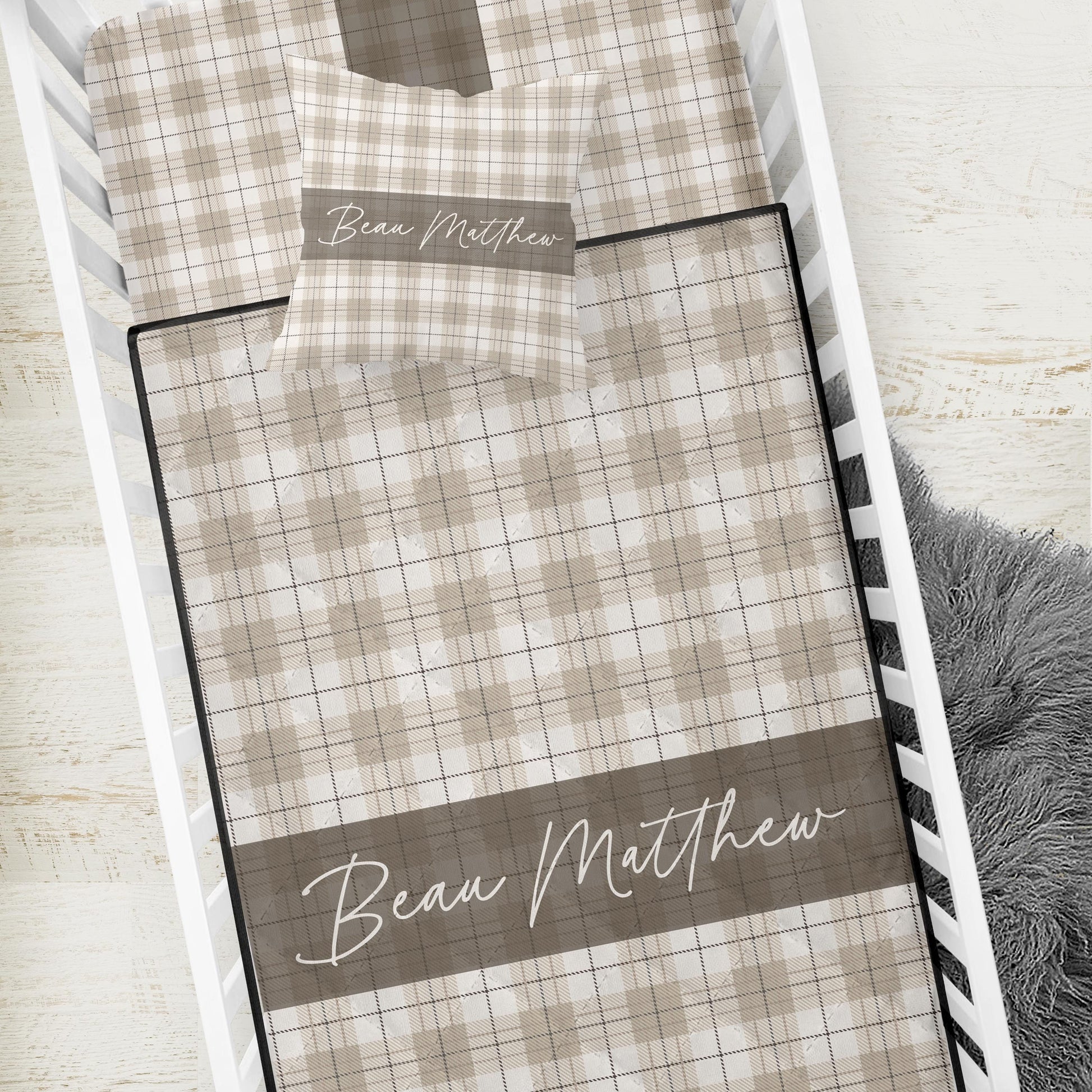 Neutral Plaid Crib Set with Quilt