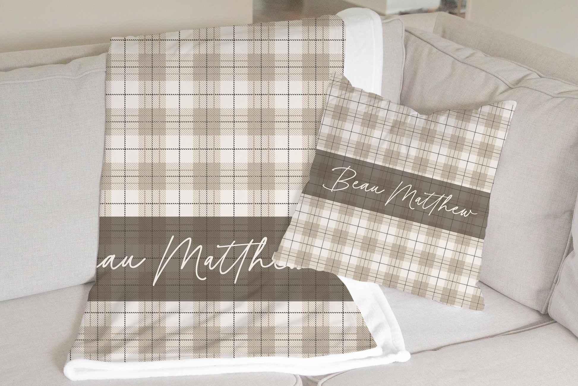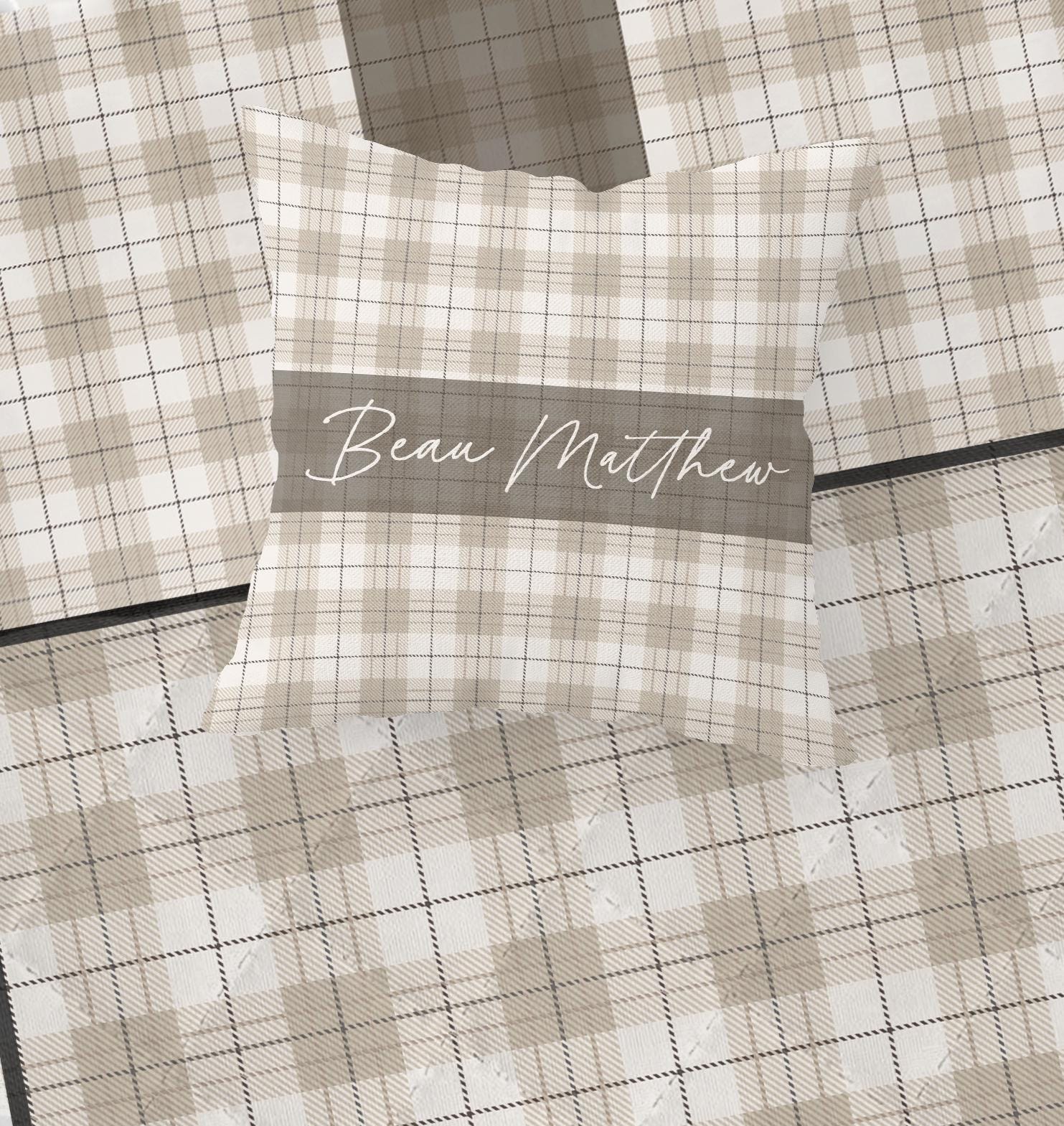 Neutral Plaid Personalized Pillow
