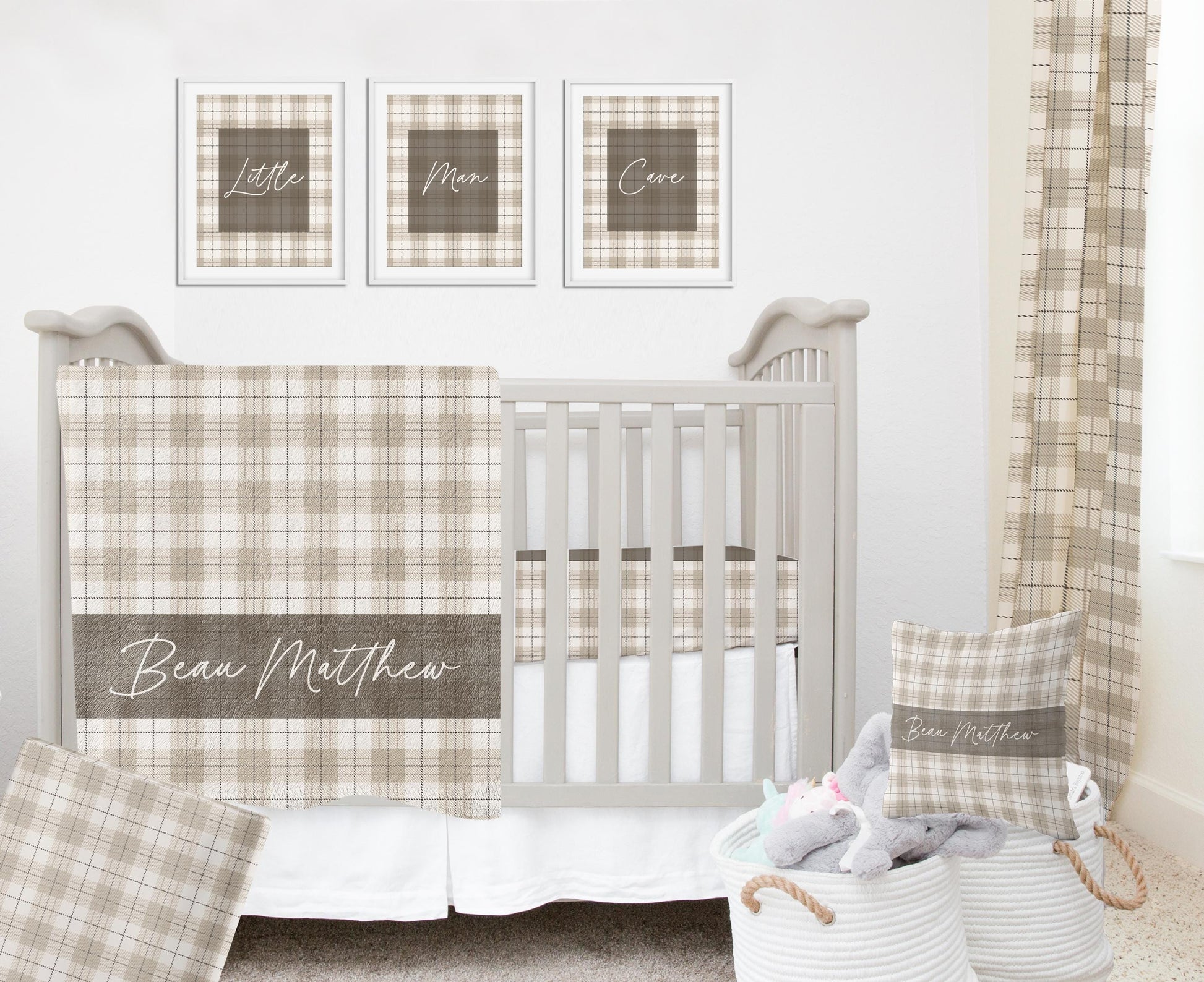 Add a cozy touch to your nursery with this soft, neutral plaid pillow. Featuring a timeless design that blends seamlessly into woodland, rustic, or modern themes, it can be personalized for an extra-special touch—making it a thoughtful baby shower gift or charming keepsake. A perfect blend of comfort and style for any little one’s space