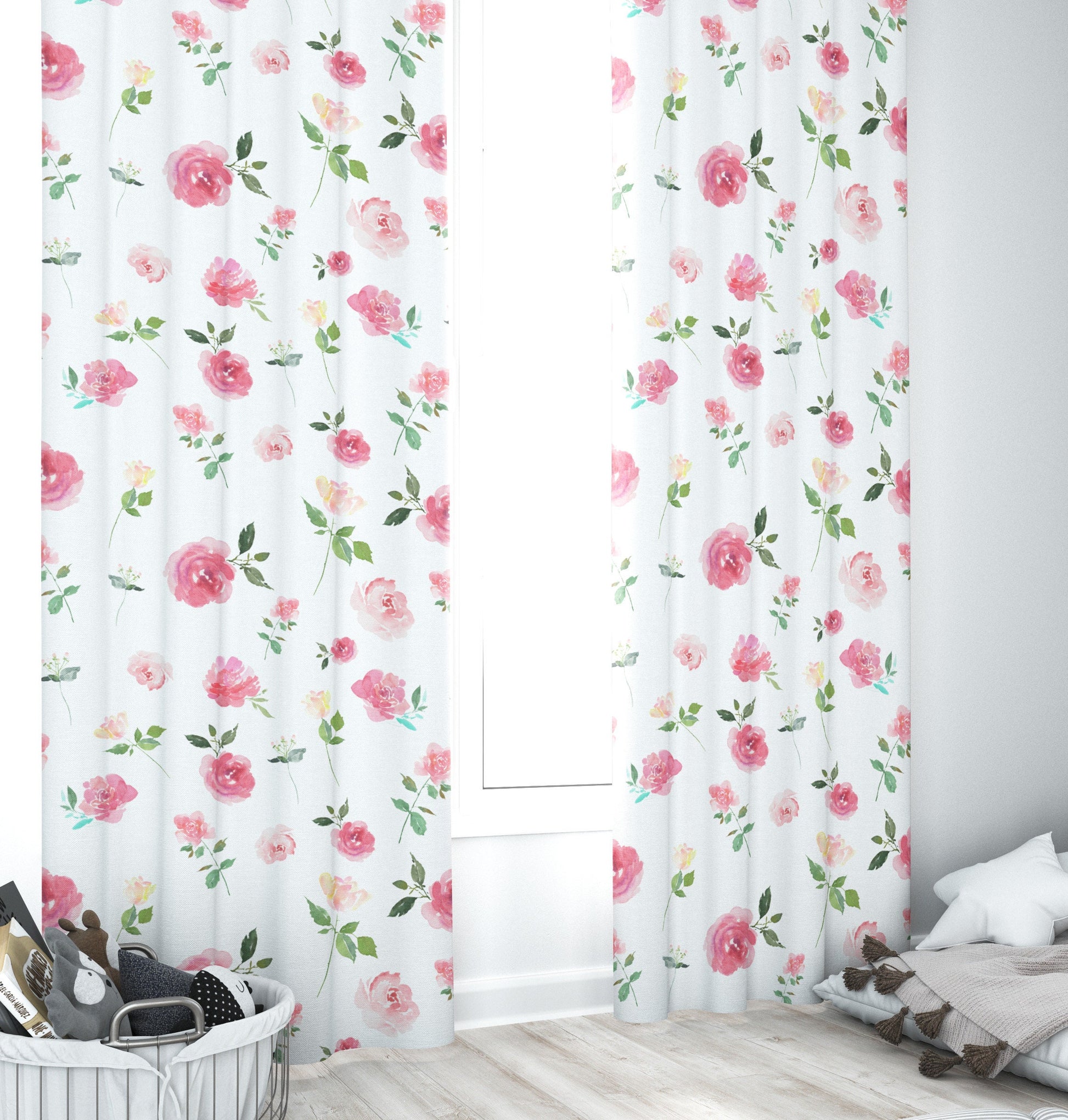 Pink Flowers Blackout Curtains
