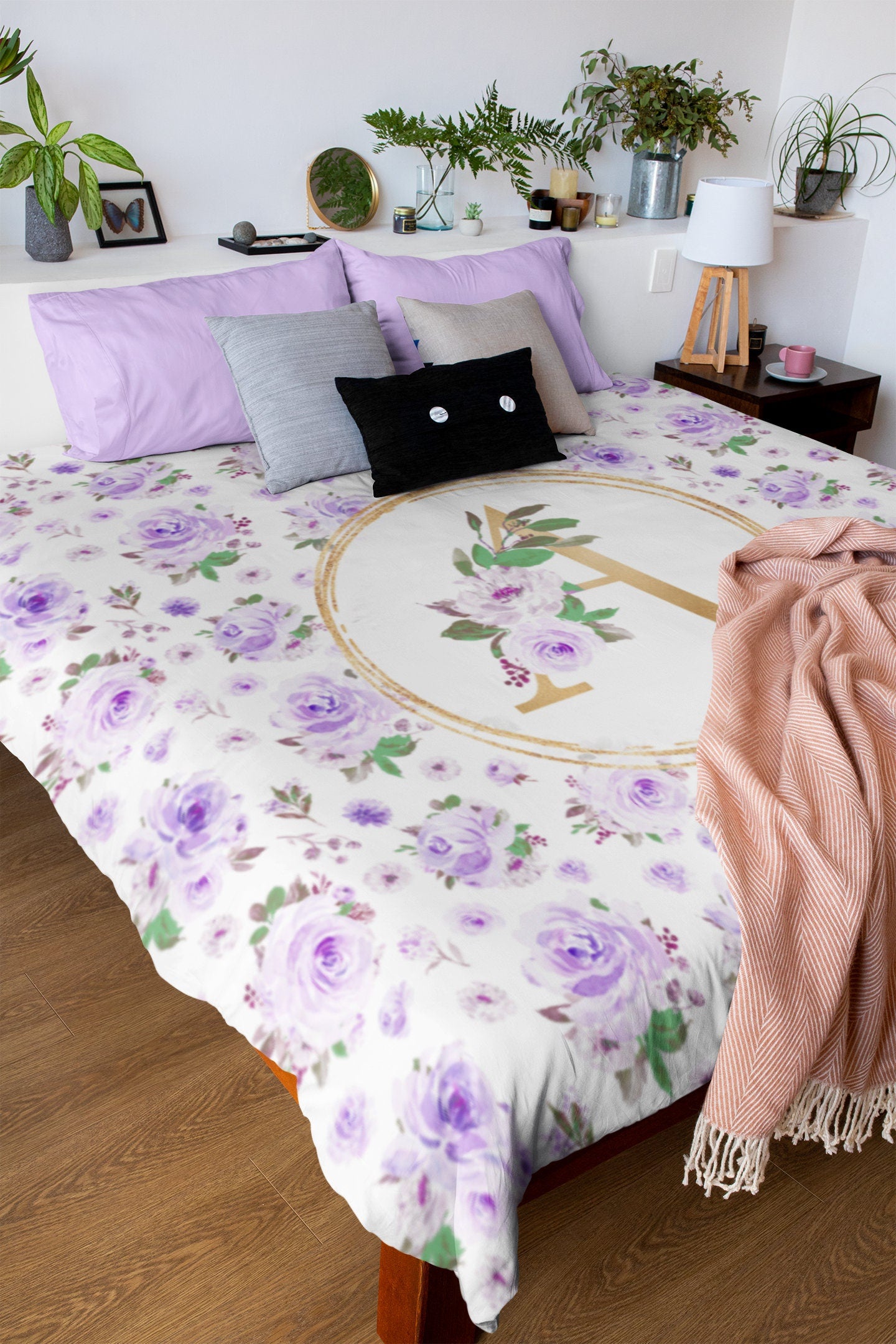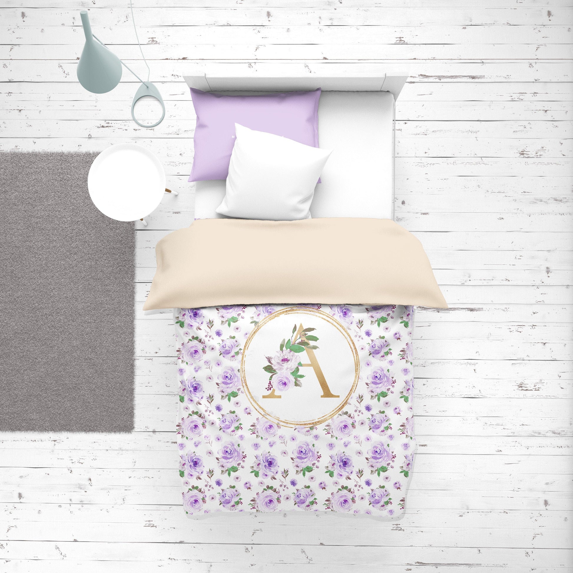 Purple Florals Personalized Duvet Cover Set for Girl