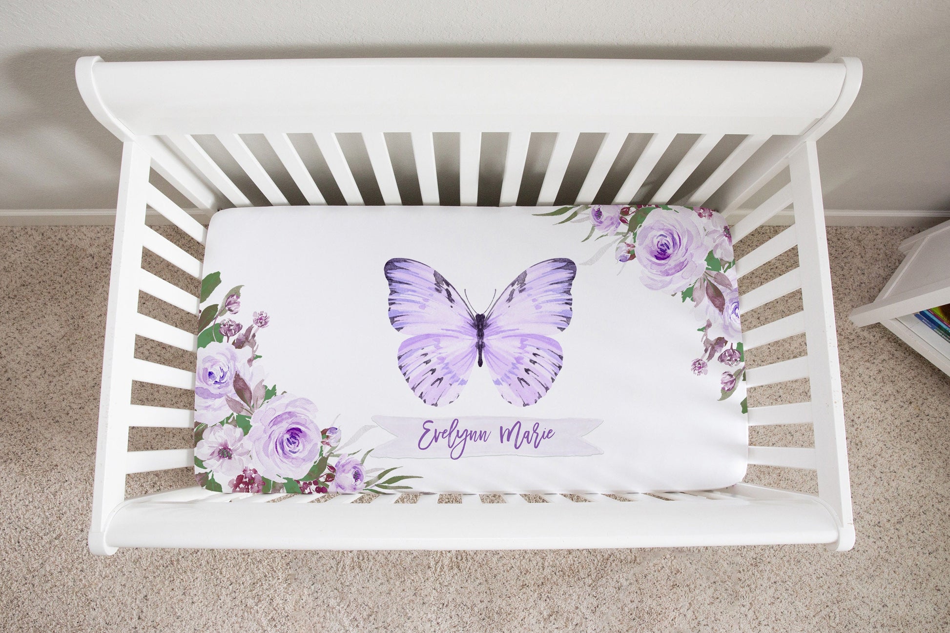 Purple Florals with Butterfly Personalized Crib Sheet for Girl