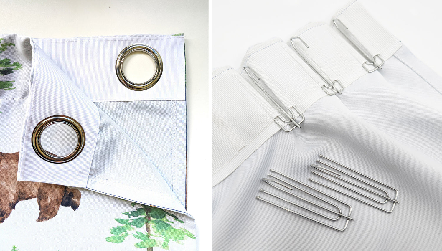 Choose between eyelets and hooks for easy installation